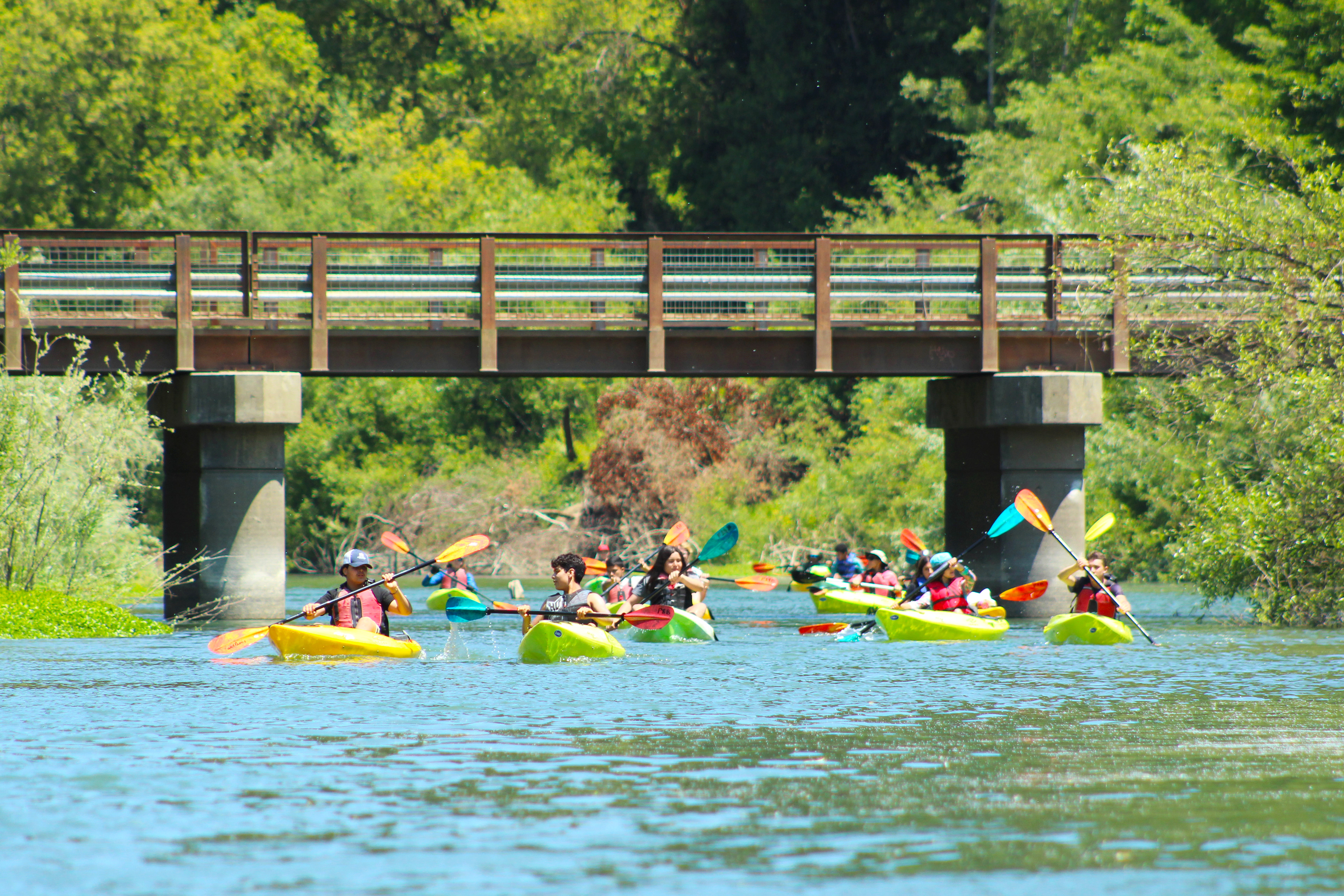 Kayakers under Odd Fellows Bridge